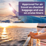 - 288Wh battery capacity is permitted on most Airlines and Cruise Liners (check with them prior to making a booking)